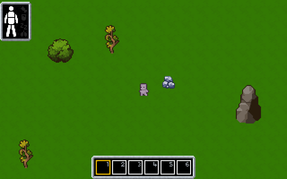 - Sticks, light coloured rocks and leaf bushes can be harvested.